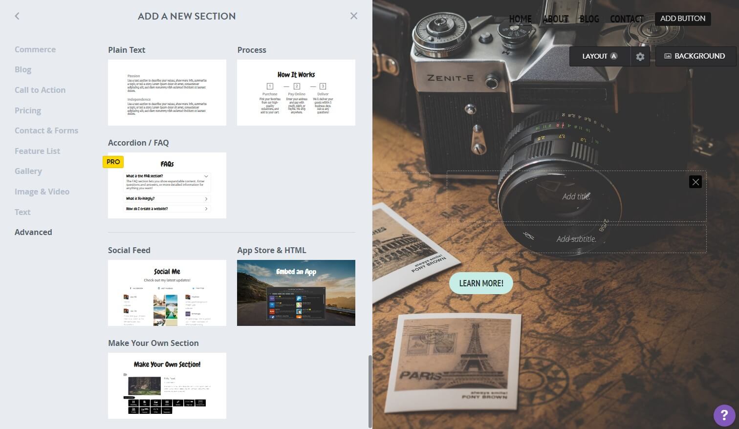 - Click “Add Section” and Go to “Advanced”.